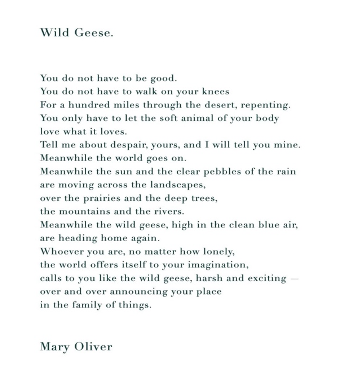 Oliver’s poem reminds us that we are an integral part of the world—its weather, its geese, its constant cycles. You belong here, alongside all things that move toward warmth and safety. You don’t need permission to take up space. You don’t need to justify your existence.